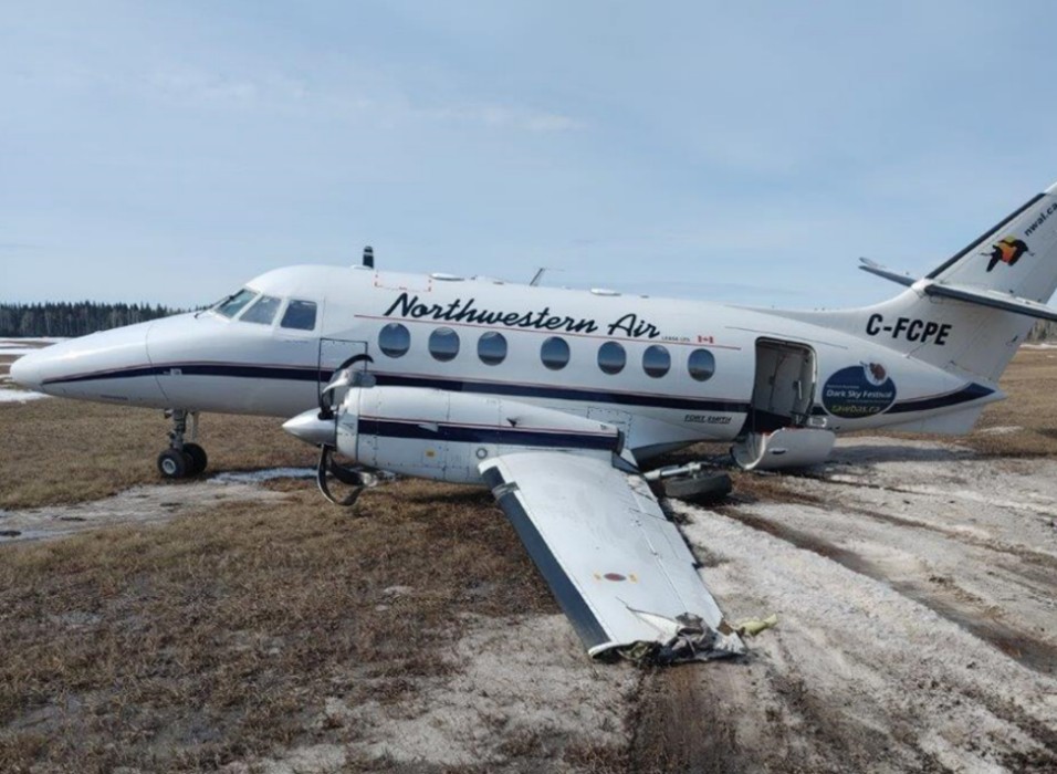At 1025 Mountain Daylight Time on 14 April 2023, the Northwestern Air Lease Ltd. British Aerospace P.L.C. Jetstream Model 3112 aircraft (registration C-FCPE, serial number 825) departed Fort Smith Airport (CYSM), Northwest Territories, on a training flight (flight PLR732T) with the captain and the first officer on board. At 1227, the aircraft returned to the airport. Shortly after landing, the left main landing gear unit collapsed, and the aircraft veered off the runway. There were no injuries. The aircraft’s left main landing gear unit, engine, propeller, and wing tip, as well as its belly cargo pod, were significantly damaged.
