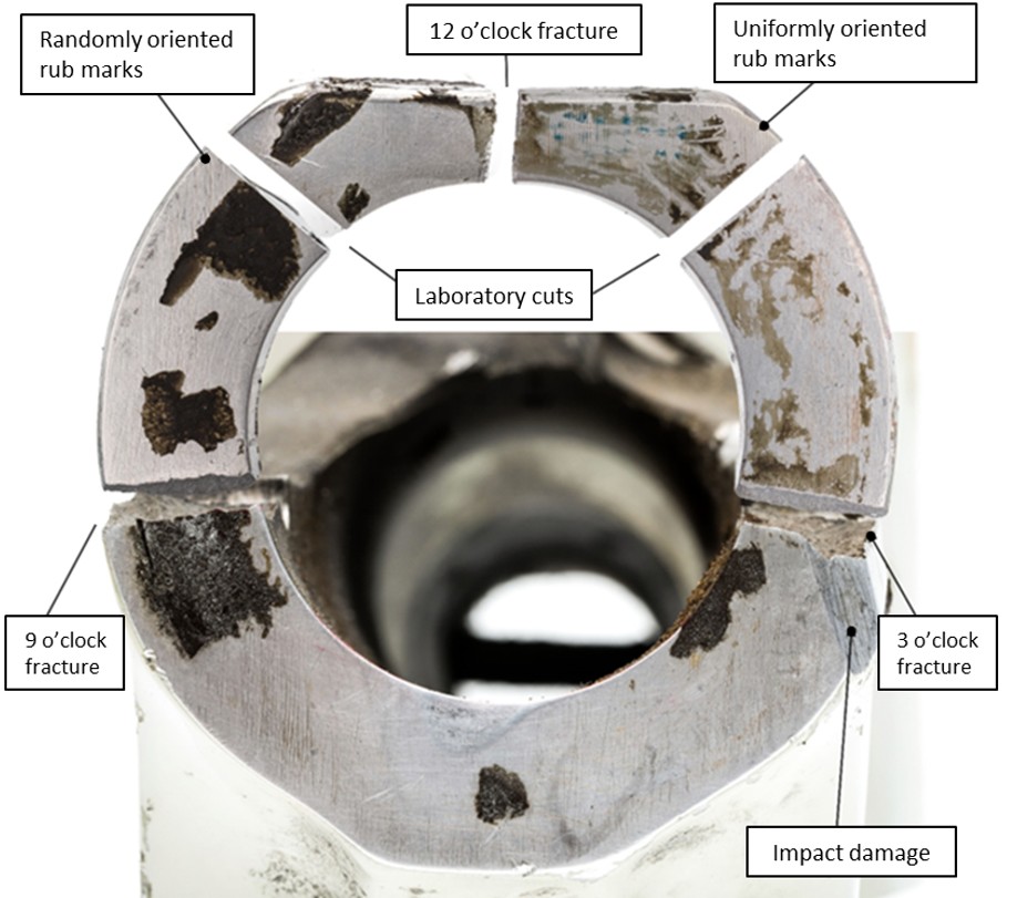 The metallurgical examination performed after the occurrence showed that the chemical conversion coating, though not visible, was present in the areas of the 3 fracture surfaces (at the 3, 9, and 12 o’clock positions) but was not in the 6 o’clock area, which had been repaired. Although the guidance provided in SB 32-19 states that repaired areas, where the protective treatment has been removed, must be reprotected using a coloured chemical conversion coating, this coating was not reapplied to the repaired area at the spigot’s 6 o’clock position.