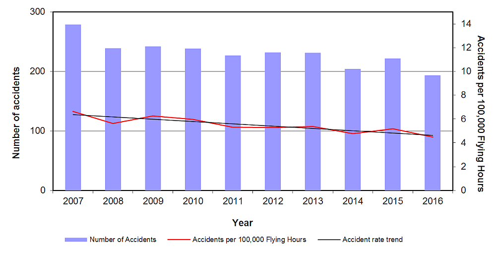 | Year | Number of Accidents | Accidents per 100,000 Flying Hours |