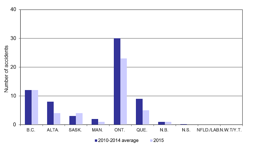 The 2015 data were collected according to the reporting requirements described in the Transportation Safety Board Regulations in force during that calendar year.