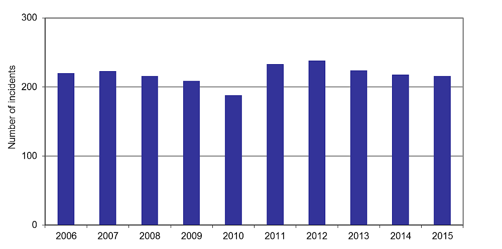 | Year | Number of incidents |
